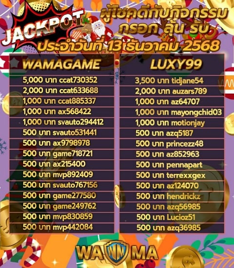 ชิงโชครายวัน กับแอพ Wamagame 918Kiss และ Luxy99 ลุ้นรับรางวัลรายวัน