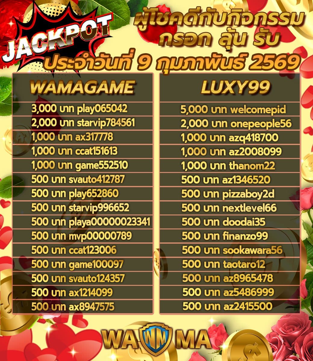 - สมัครเล่นคาสิโน WamaGame , 918Kiss และ Luxy99 แล้วรับสิทธิ์ลุ้นรางวัล ลุ้นรางวัลคืนกำไรกันได้ทุกวัน เพียงกรอกข้อมูลลงทะเบียนใช้สิทธิ์กับเรา ชิงโชครายวัน